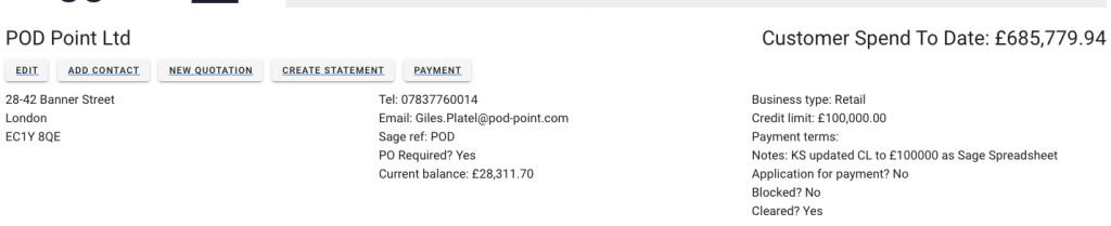 You will be shown a list of outstanding payments for that customer by clicking on the Payment’ button.