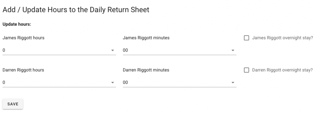 The IMS will give you a view of the workers who attended that job and give you input boxes to add hours, minutes and if they need an overnight stay adding.
