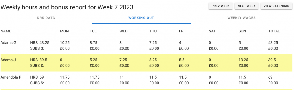 Once the DRS has been viewed, hours added, and any other required changes made, the user can confirm by ticking the Checked box. This provides an instant visual of whether DRSs have been checked.