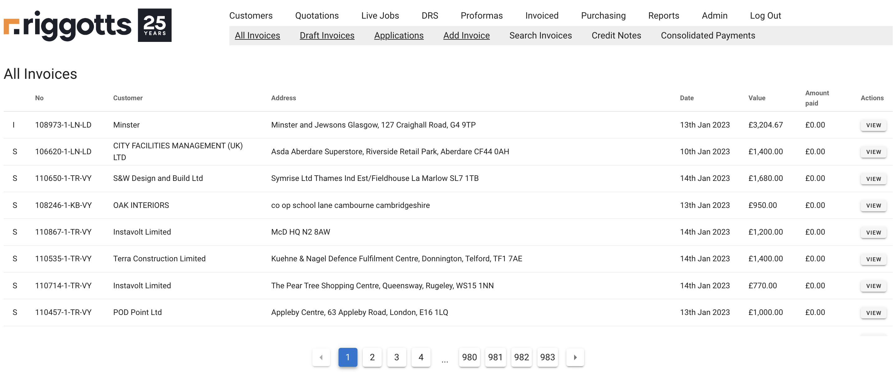 Use the ‘View button on the right to access the invoice and other options.