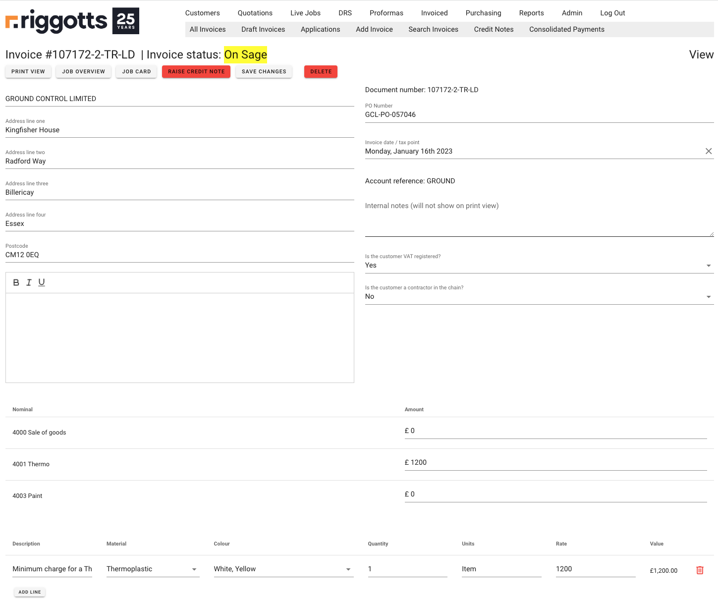 - Progress to Draft invoice and then onto the final invoice and posting to Sage.