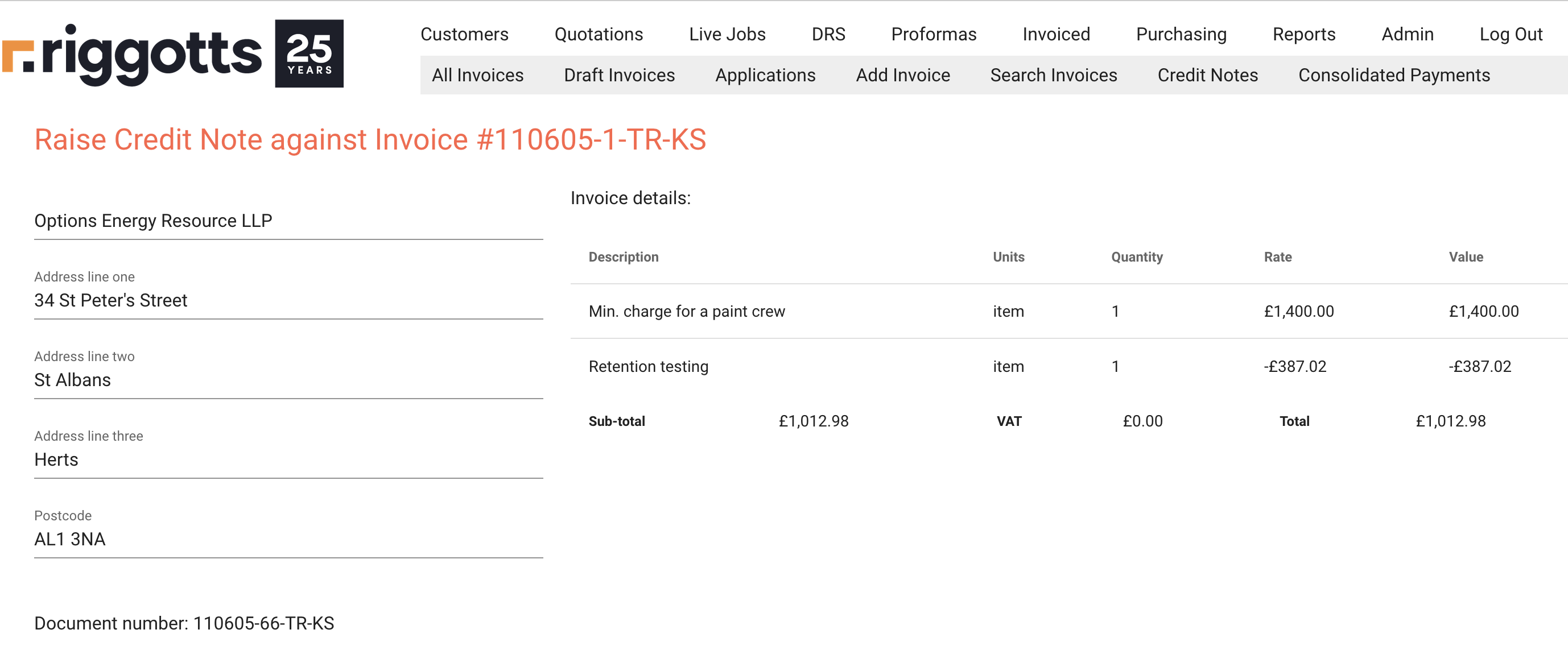 - Raise Credit Note – Full access to enter a credit note and edit as required.