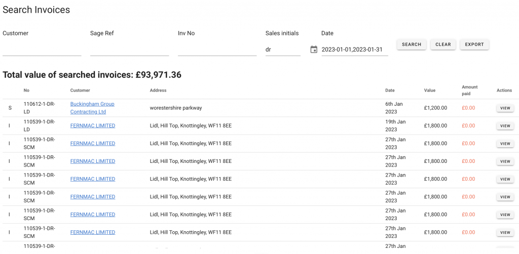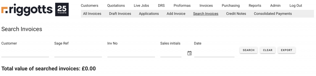 Export Invoices Search
