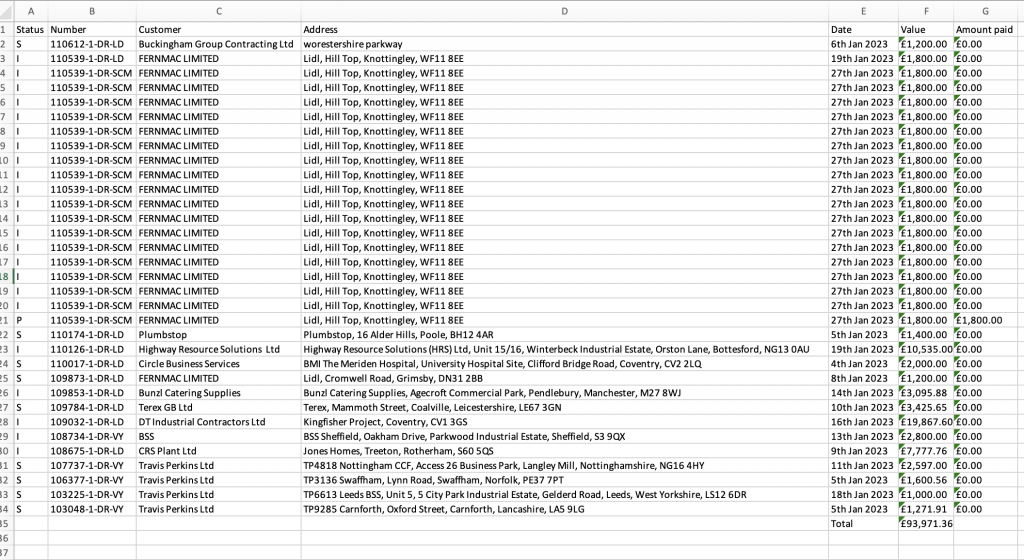 On the left-hand side, you can see the letters ‘I’ and ‘S’, meaning ‘Invoiced’ and ‘Sage’, respectively.