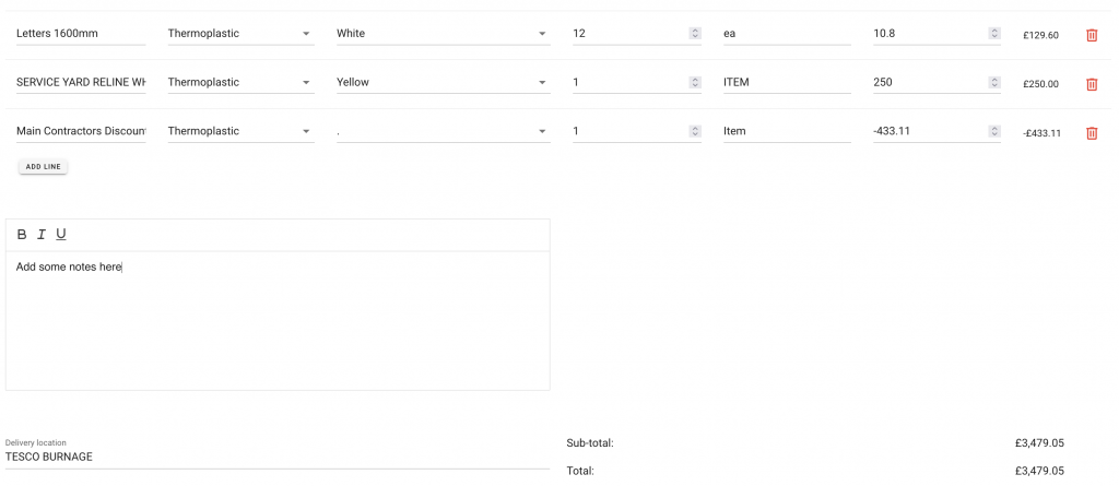 You also have the option to add a new line (Add a line box below the last line) or delete a line (use the Bin located on the far right-hand side).
